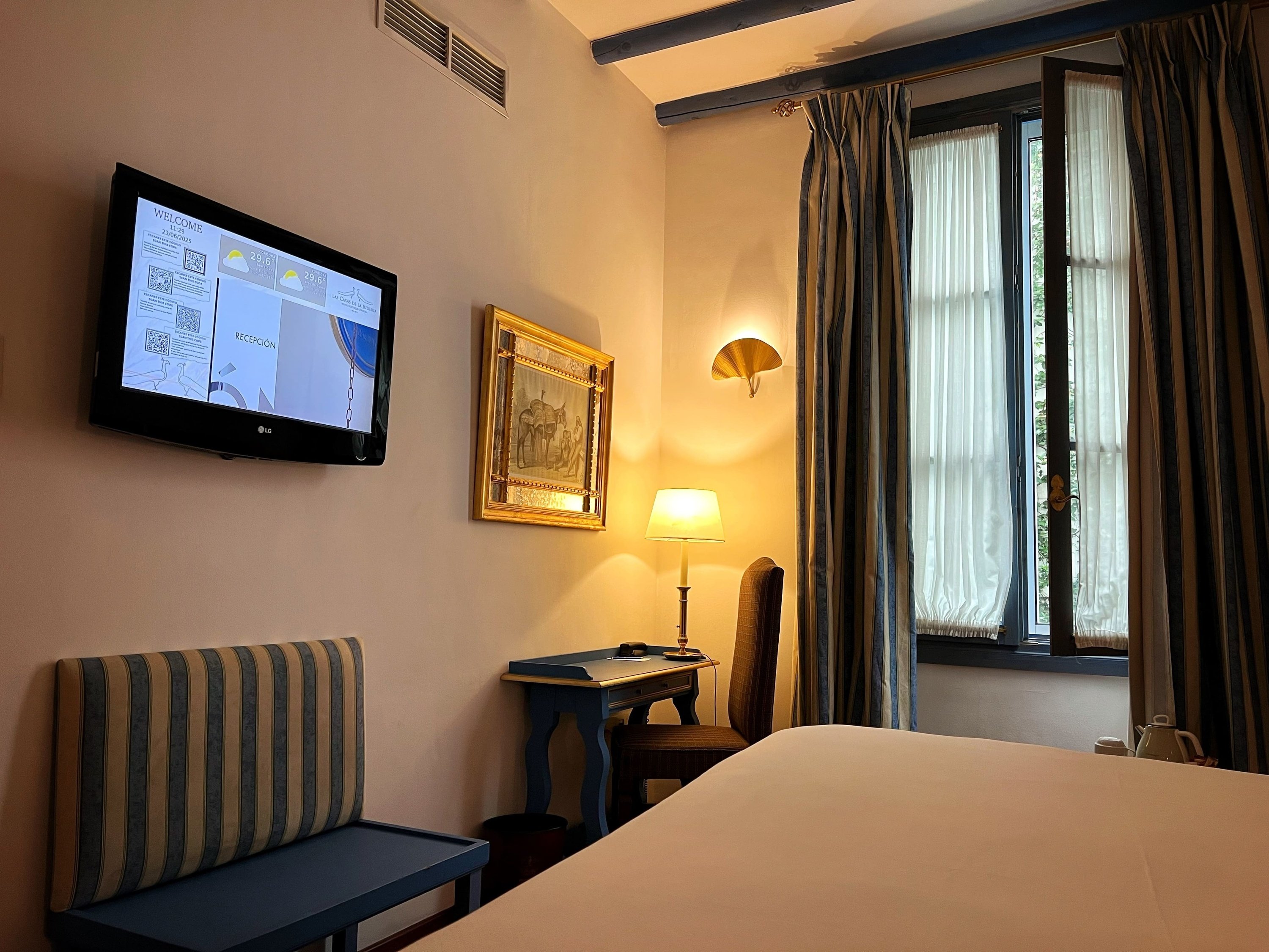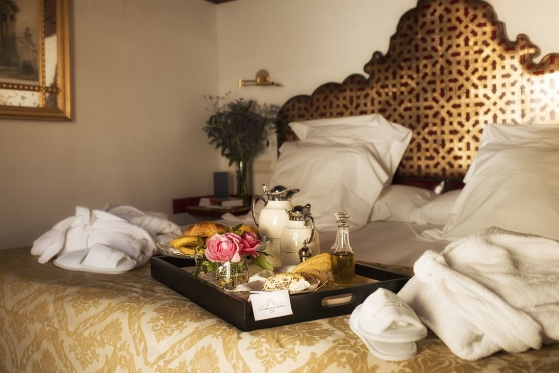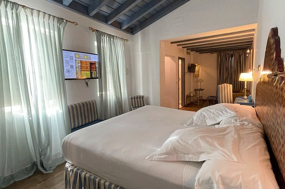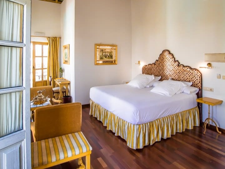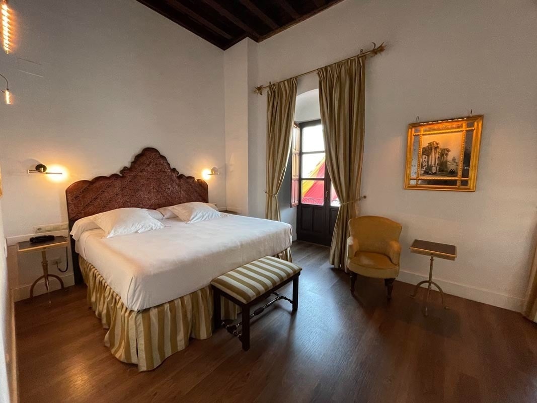 Habitaciones más amplias con acabados de madera tallada y con una exquisita y acogedora decoración respetando el equilibrio histórico del edificio.