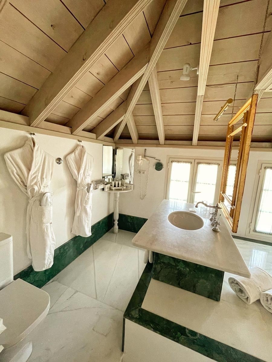 Junior Suite con un salón pequeño en la misma habitación. Tiene 2 Cuartos de Baño: 1 con ducha y el segundo con Hidromasaje y ducha independiente. Vistas sobre nuestros patios.